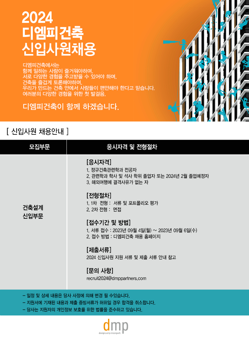 Inside 2024 디엠피건축 신입사원 채용 공고 2023.08.08