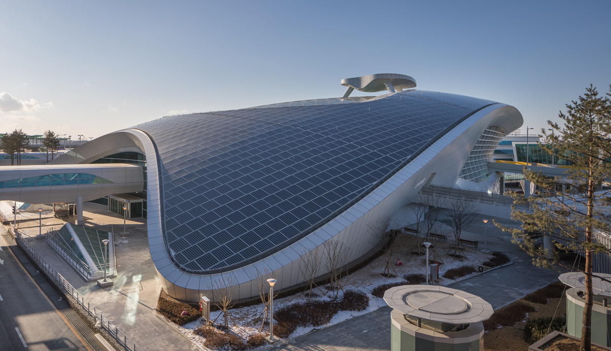 하면서 동시에 지붕전체에는 태양광발전설비(BIPV)를 구축함으로써 친환경 공항기반을 구현했다. 에너지코어의 공간 활