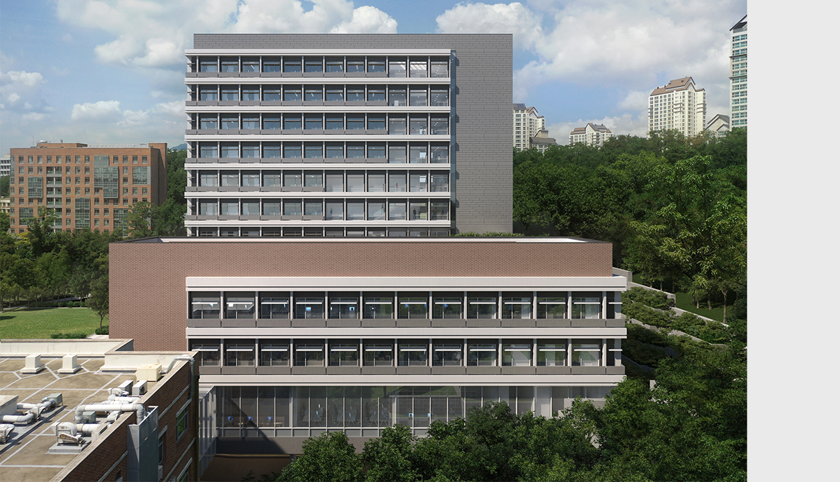 가로-전면광장-건물-중정이 연속적으로 이어지는 기존 캠퍼스 마스터플랜의 질서를 준용한 배치로 기존 건물과 종합실험동, 추후 증축, 신축건물을 고려한 배치제안을 하고, 학과별 소통융합의 공간을 계획하고 확장된 보행가로에서 연결되는 새로운 광장을 제안하였다. 기존 약학관과 연계하여 약학대 프로그램을 배치하여 ㄷ배치를 통한 약학 클러스터를 완성하고 실험효율을 고려한 실모듈 계획, 실험실이 수평적 확장과 분할을 고려한 샤프트 인접배치와 예비샤프트 계획, 연구환경 변화에 대응가능한 다양한 타입의 실험실을 계획하였다.