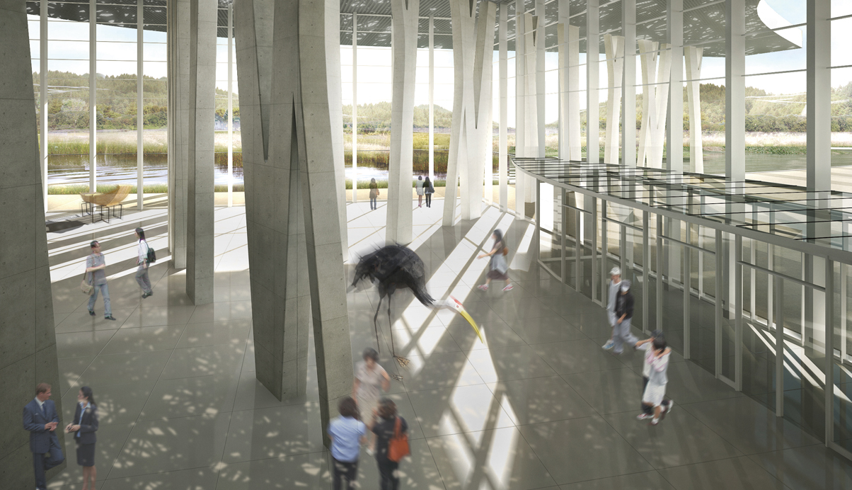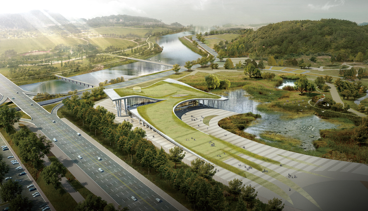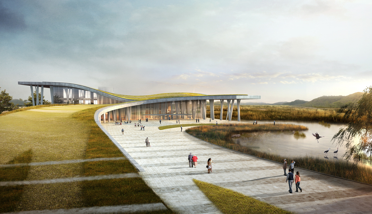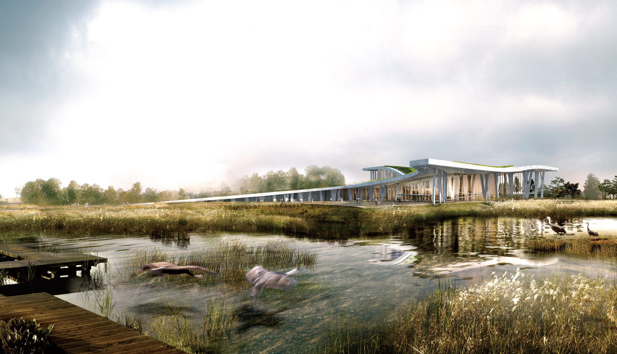 도시가 끝이 나고 자연이 시작되는, 사람과 자연이 만나는 장소에 순천만 습지센터가 위치한다. 이 건물은 습지 생태 체험관, 습지 전시관, 교육시설, 컨프런스홀, 전망대, 카페 등이 들어있는 습지를 주제로 한 문화시설이다. 지붕 전체의 녹화는 사람들뿐만이 아니라 이곳을 지나는 하늘의 철새들 또한 배려한다. 지붕의 수평면은 땅을 연상시키고, 굽이지는 수평선들은 새의 움직임을 연상시킨다. 더불어 건물의 내외부에서 볼 수 있는 갈대기둥의 모습을 통해 방문객들은 순천만 습지공원의 전체 이미지를 기억하게 한다.