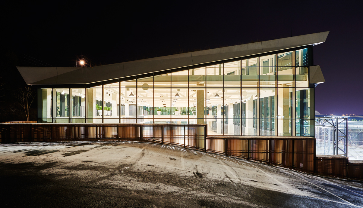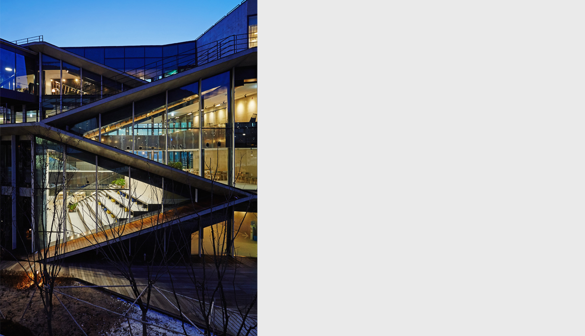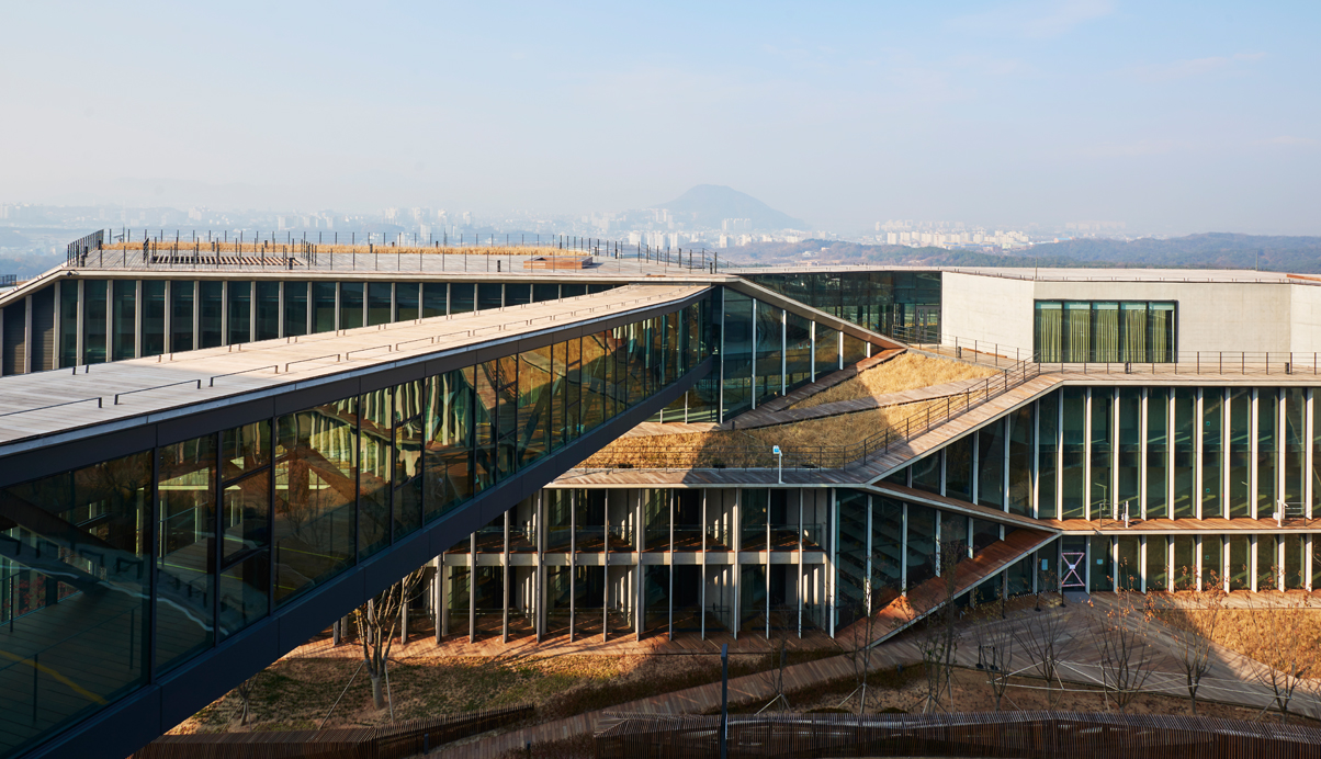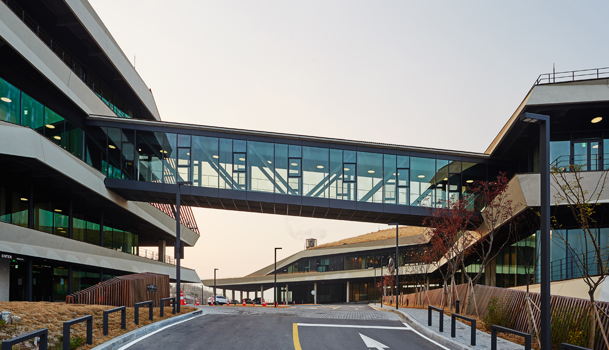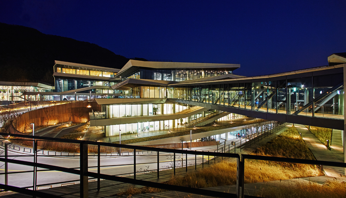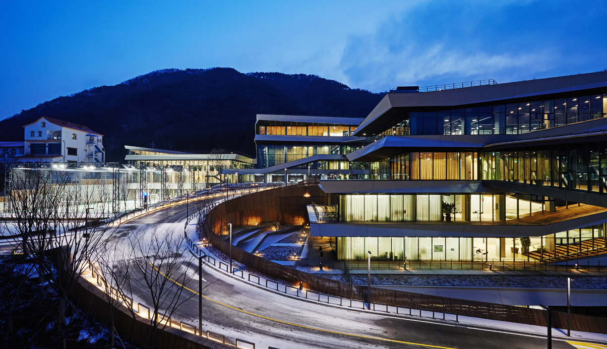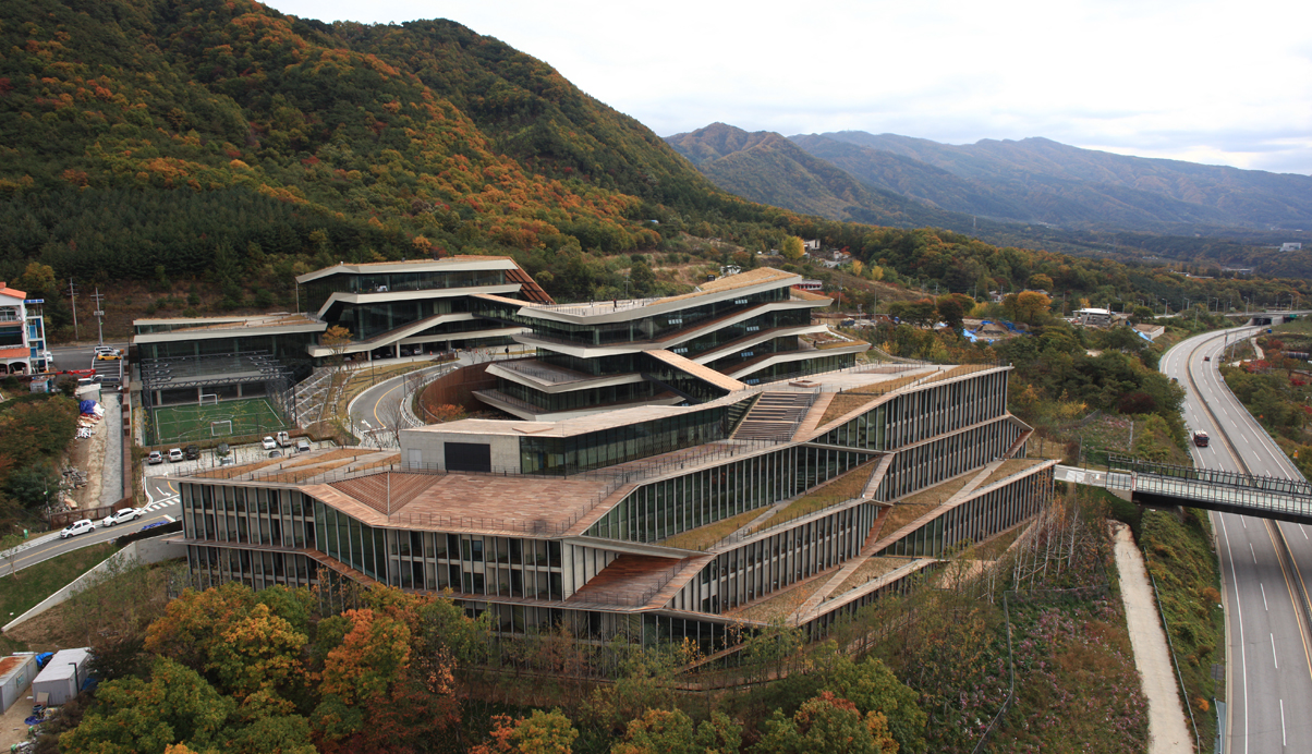 춘천시 동면에 위치한 NAVER 지식정보 캠퍼스는 지하2층에서 지상5층의 규모로 연구동, 숙소동, 강당동의 3개로 직원들의 연수 및 연구를 위한 공간이다. 춘천 시내 동쪽 산중턱에 위치한 계획부지는 서쪽 방향으로 소양강과 봉의산으로 전망이 펼쳐지고, 동쪽으로는 신록이 우거진 국립공원 지대로 이어지는, 풍부한 자연 환경에 둘러싸인 지역이다. 전체적인 지형을 살려 경사지의 하부로 연결되는 각 방향의 풍부한 전망과 지형을 살렸다. 또한 부지를 관통하는 도로의 소음과 연수 프로그램의 프라이버시를 확보하였다. 산업단지에서 볼 수 있는 대규모 지반조성의 방식이 아닌 자연을 보전하고 지형에 알맞은 새로운 환경융합형의 개발을 선택하였다. 건축적 개념은 건축물이 랜드스케이프와 일체화되는 것으로 지형의 흐름을 고려한 배치와 판 적층형 디자인으로 각 동에서 최대한의 전망을 확보하고 지형과 함께하는 자연스러운 스카인라인을 형성하고자 하였다. 또한, 소통을 위한 건축공간의 형성으로 각 동은 수평/수직적 동선으로 연결되며 커뮤니티 보이드라는 공용공간을 통해 활발한 교류의 공간을 형성한다.