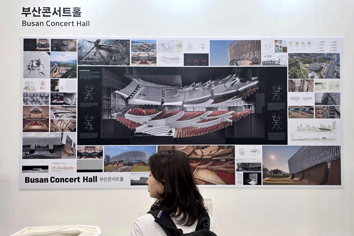 부산콘서트홀의 외관 디자인부터 공연장 내부의 설계과정을 전시하였고,