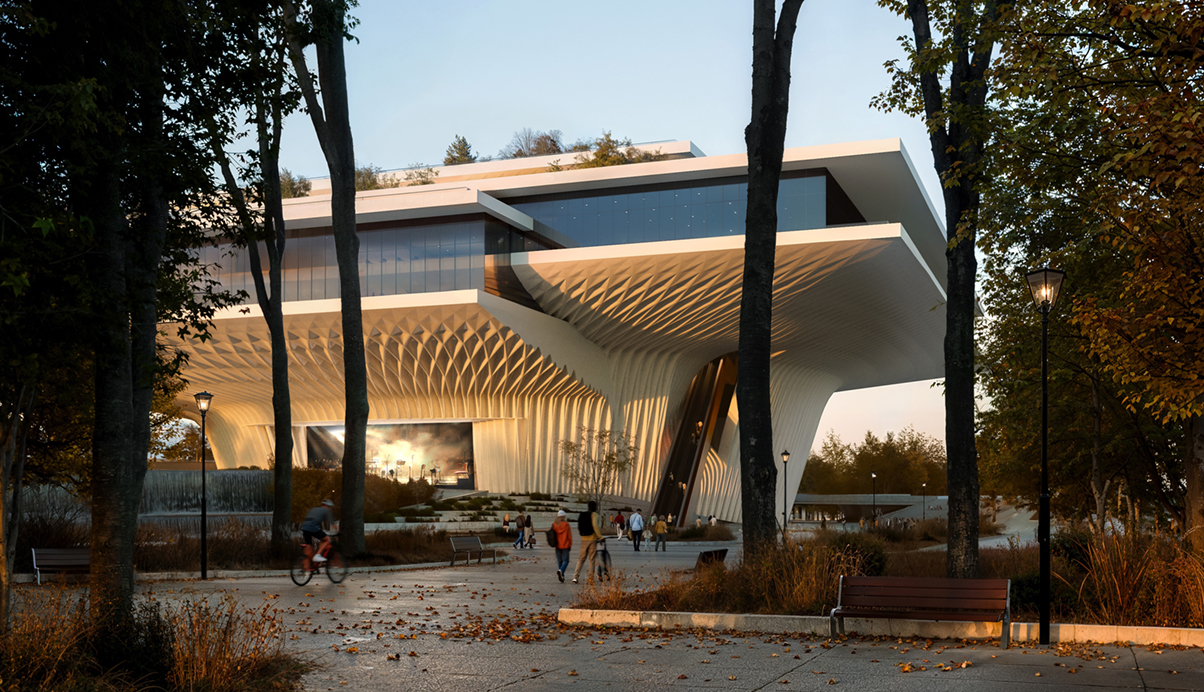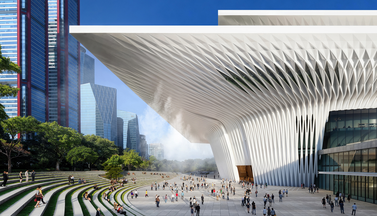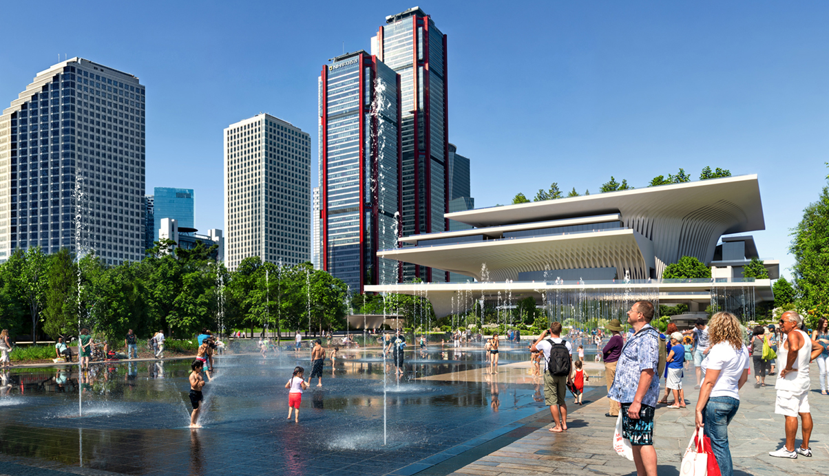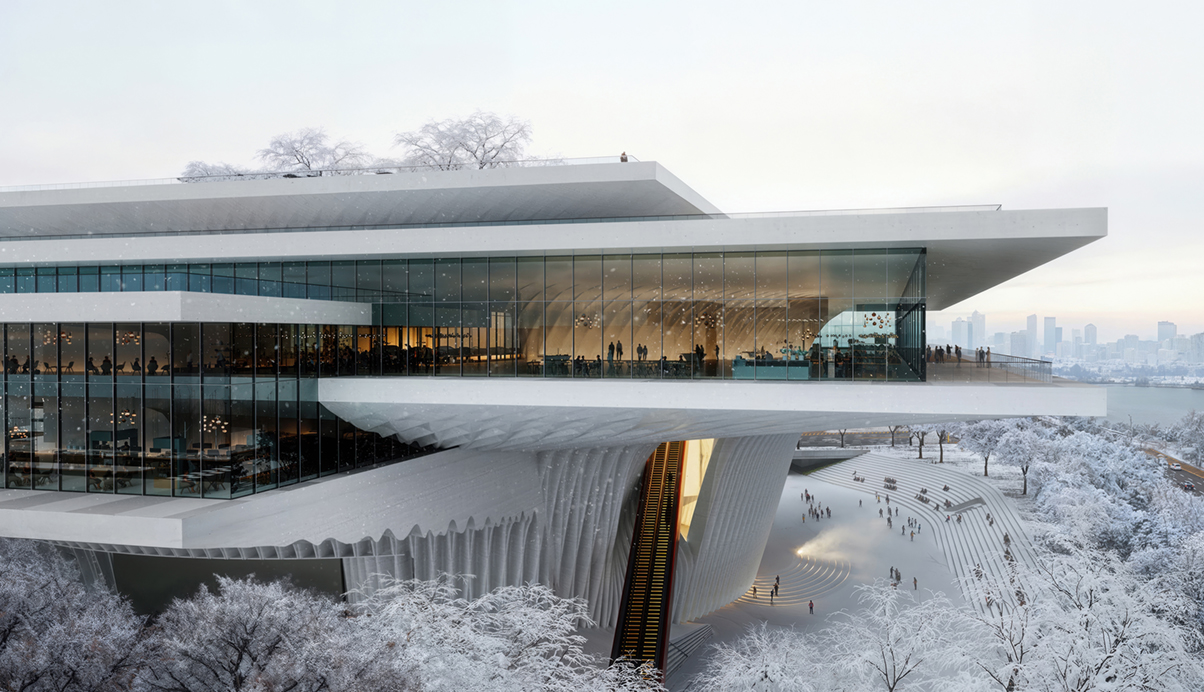 여의도는 도시적 실루엣이 강 가운데로 깊게 들어서며 풍경의 원근을 극적으로 만들 수 있는 랜드마크적 장소이다. 이러한 여의도의 가운데를 쉼표처럼 가로지르며 비워내는 공원. 이 끝자락에 자리잡게된 새로운 도시의 기억은 무엇일까. 시민의 장소에서 가장 중요한 것은 바로 일상의 눈높이다. 많은 시민들의 평범한 일상에서 항상 풍경의 중심이 되기 위해서는 멀리서도 보이는 눈높이의 랜드마크가 되어야한다. 우리의 제안은 수평으로 이어지는 한강을 따라 대지의 평평한 켜가 그대로 떠 있는 새로운 시민의 장소를 만드는 것이다. 이것으로 수평적으로 이어지는 강의 풍경을 안고 들어와 도시적 스케일의 정점을 이루는 새로운 기억이 될 것이며, 떠있는 대지로 눈높이에서 이루어지는 땅의 풍경은 편하게 열리게된다. 무엇보다도 대상으로서의 장소가 아니라 시민이 직접 도시풍경을 경험하는 대지로서 새로운 공공의 장소, Sky Foyer가 될 것이다.